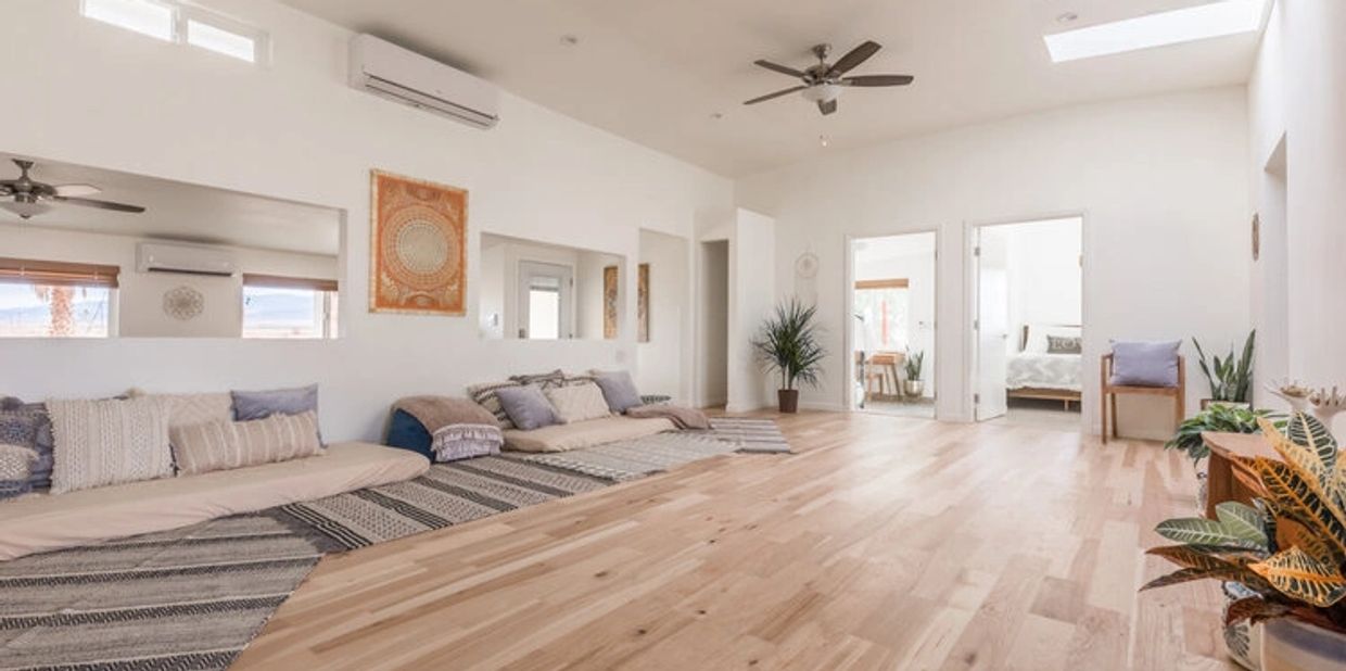 A private, 4 bedroom, 4 bathroom house with a 400 square foot event room is the location for our retreat. Wonder Valley is minutes from the entrance to Joshua Tree National Park. This location is known for not only ancestral healing and energy but silence. Light pollution and noise pollution free, you will experience the night sky as never before. Stargazing has a whole new meaning as does a full moon. The natural soundscape is so quiet, you will be awed and treasure the noise-free conditions. There is Wi-Fi, but no TV. Take the opportunity to switch off and connect to YOU.